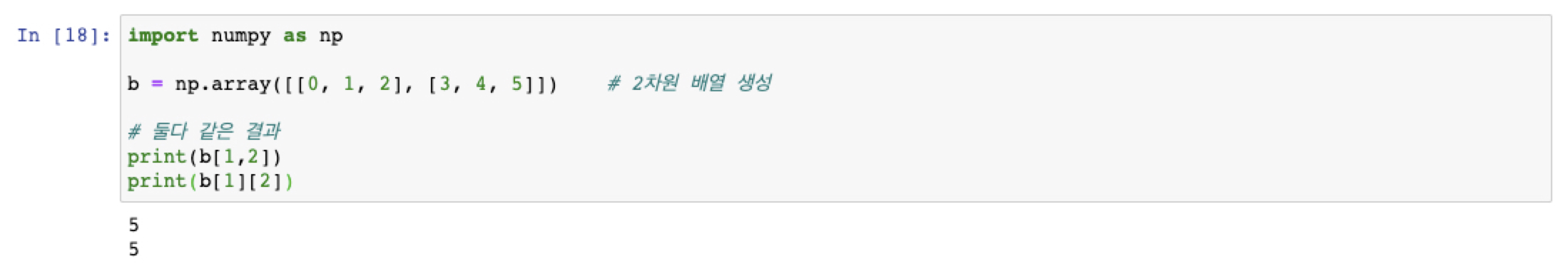b = np.array([[0, 1, 2], [3, 4, 5]]) # 2차원 배열 생성