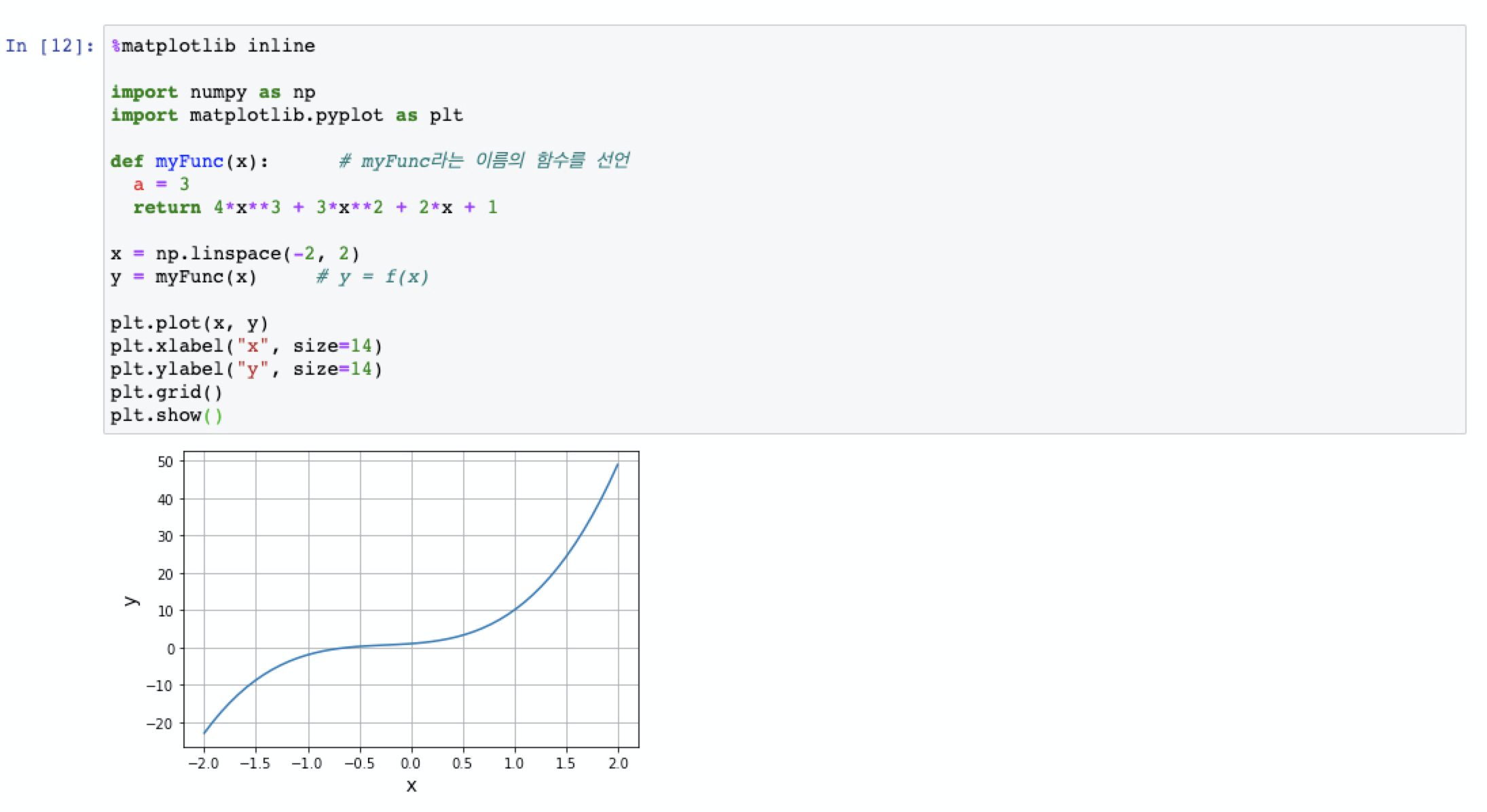 y = myFunc(x) # y = f(x)