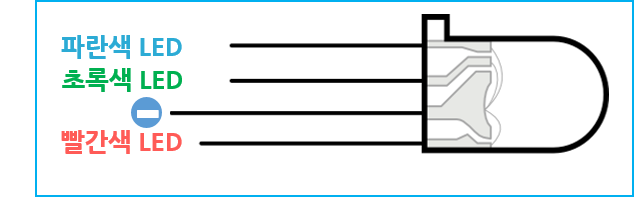 3색 LED는 빨강, 초록, 파랑의 3가지 색을 하나의 LED로 합친 것입니다.