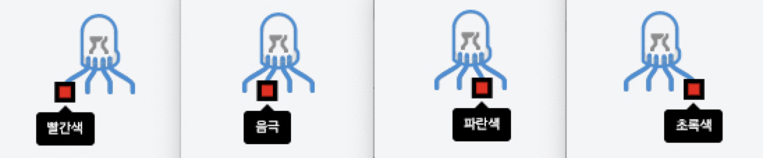 각각의 색을 제어하는 핀의 전압의 차이를 이용해 여러 가지 색을 표현할 수 있습니다.