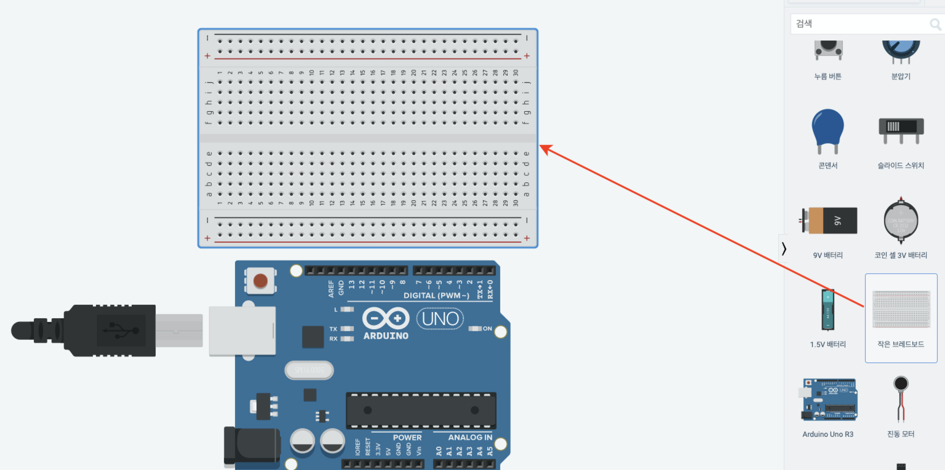 브레드보드를 클릭 혹은 드래그해서 위치시키기
