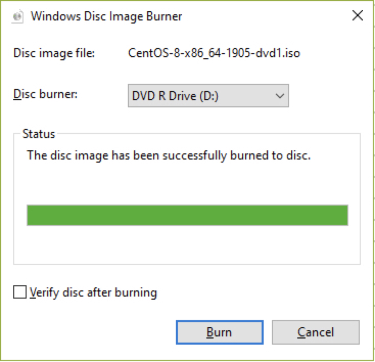 - 이미지 굽기가 완료되면 아래와 같은 화면이 나온다.