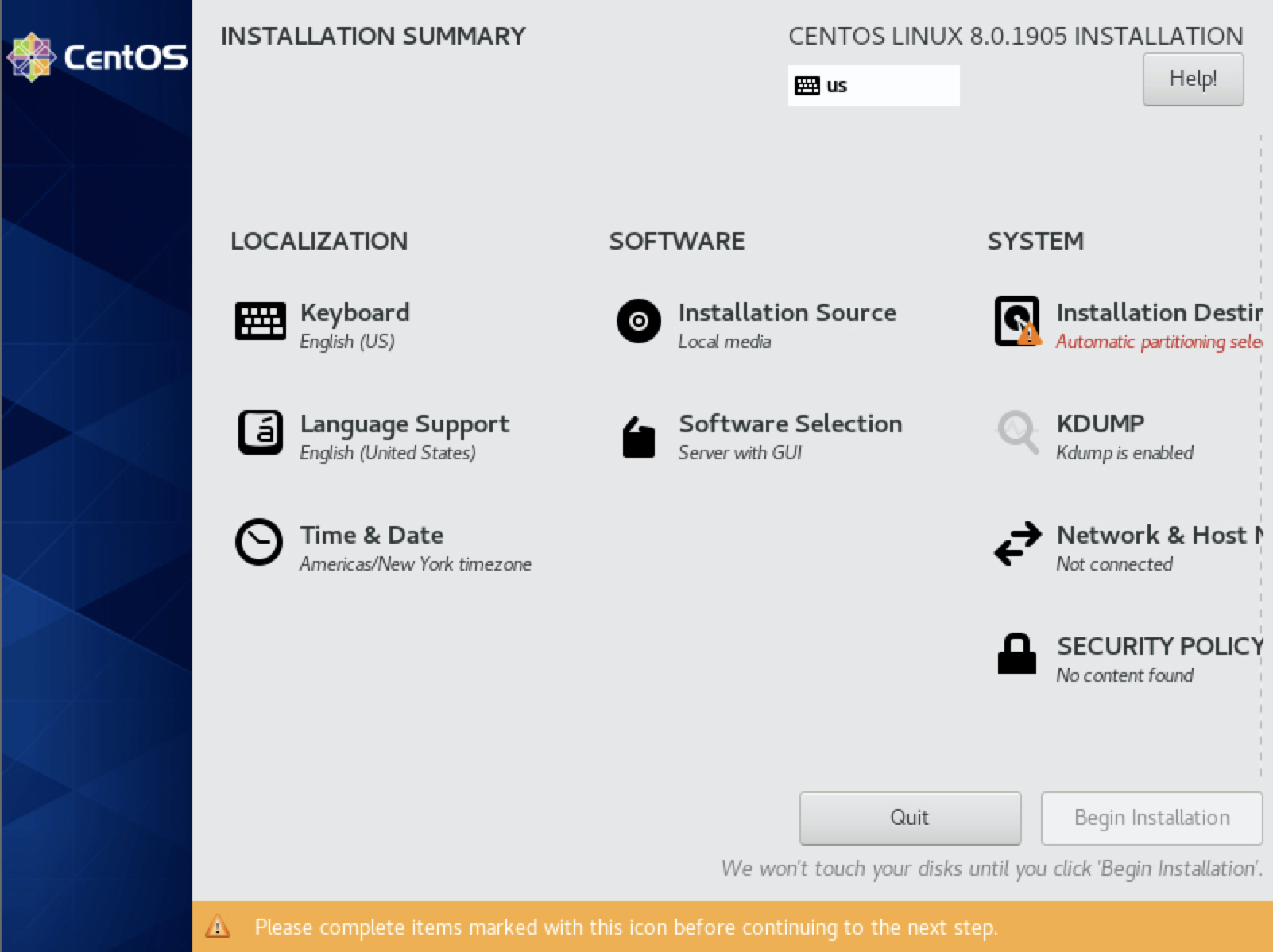 16. 모든 설정이 완료되면, Begin Installation 을 클릭하여 설치을 시작합니다.