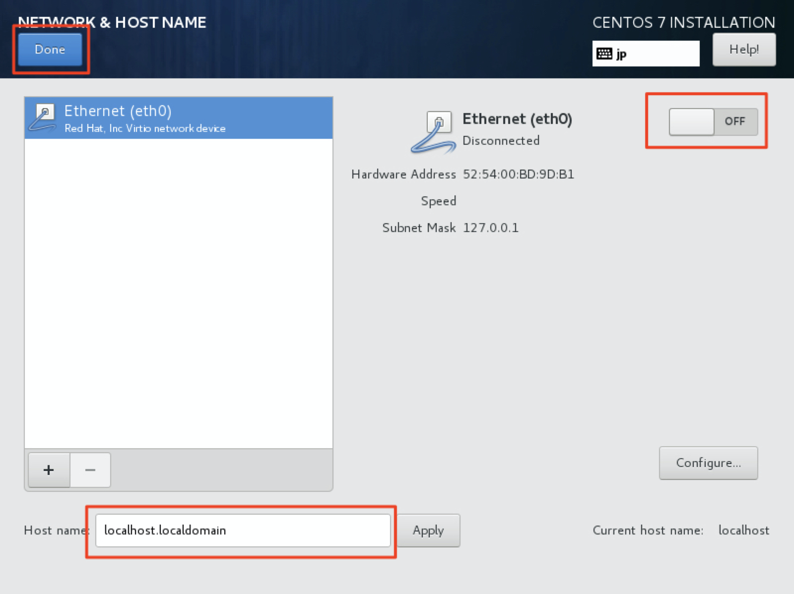 15. 네트워크 설정에 문제가 없다면 Done 버튼을 클릭합니다.