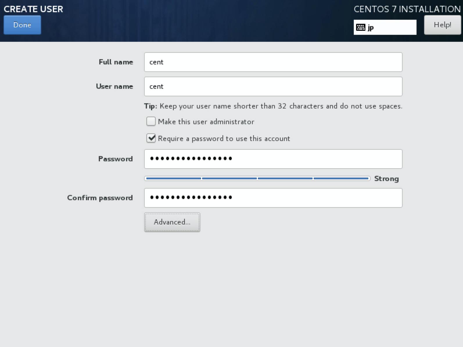 19. 다시 설정화면으로 돌아가면 이번에는 USER CREATION 를 클릭하여 일반 유저 계정을 추가합니다. 유저이름과 패스워드를 설정하고 Done 버튼을 클릭합니다.