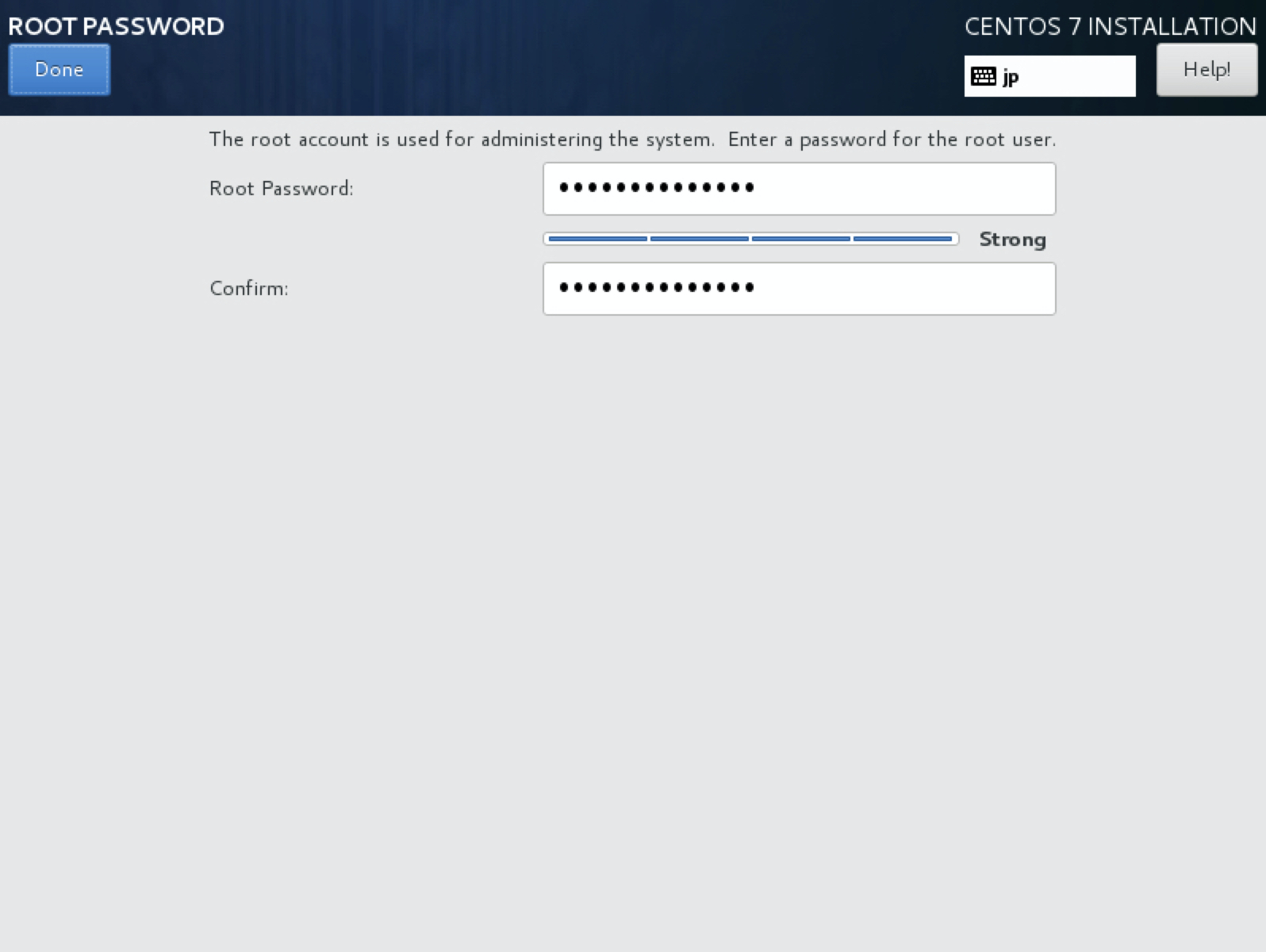 를 클릭하여 root 유저 패스워드를 추가합니다. 설정이 완료되면 Done