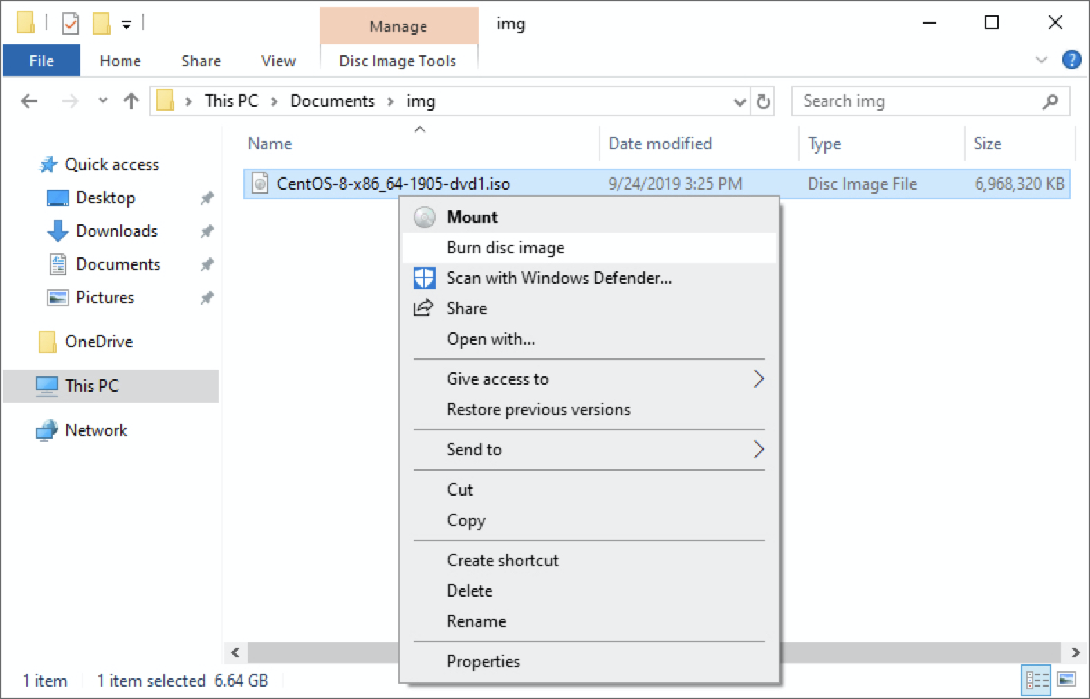 - 다운로드한 iso 이미지 파일을 우클릭한다.