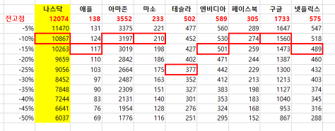 그런데 얘네들은 2%~3% 떨어졌는데 애먼 애플, 아마존이 4% 넘게 빠졌다.