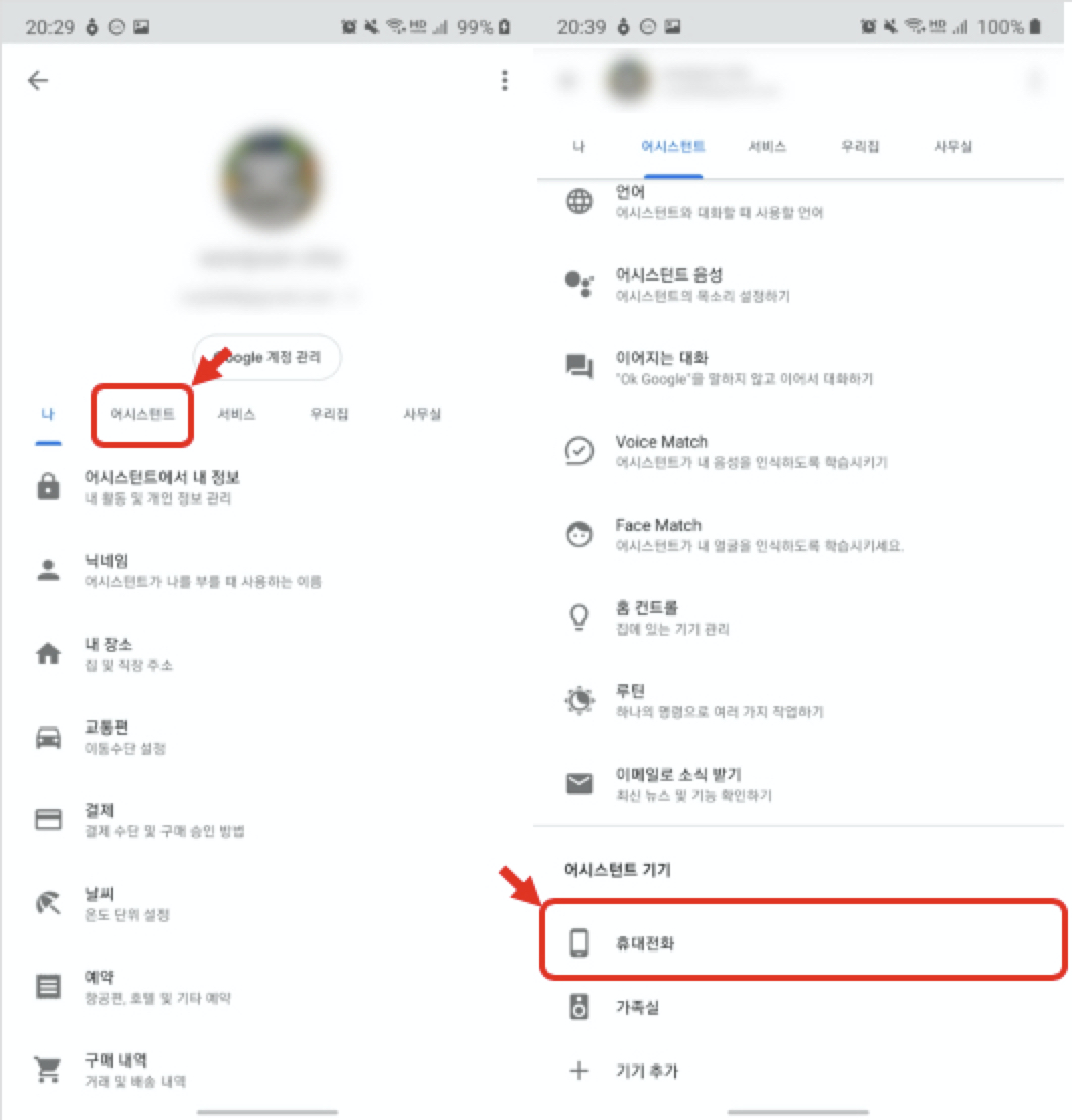 어시스턴트 -> 휴대전화