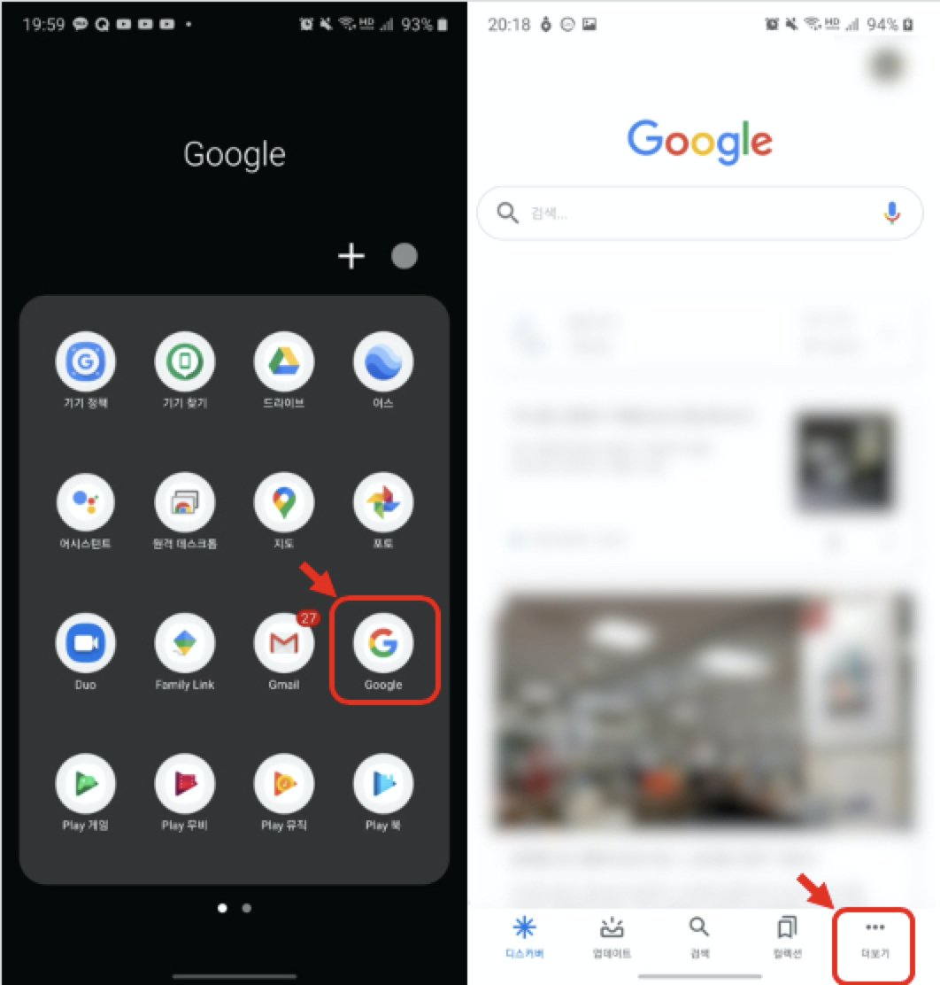 구글 앱 실행 -> 더보기