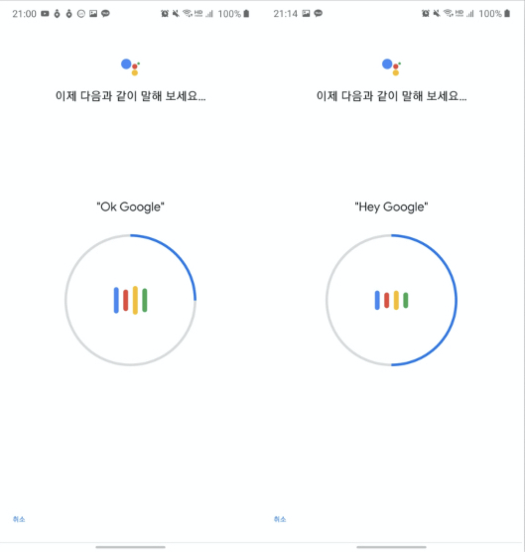 말하기 : Ok Google (2번) -> Hey Google (2번)