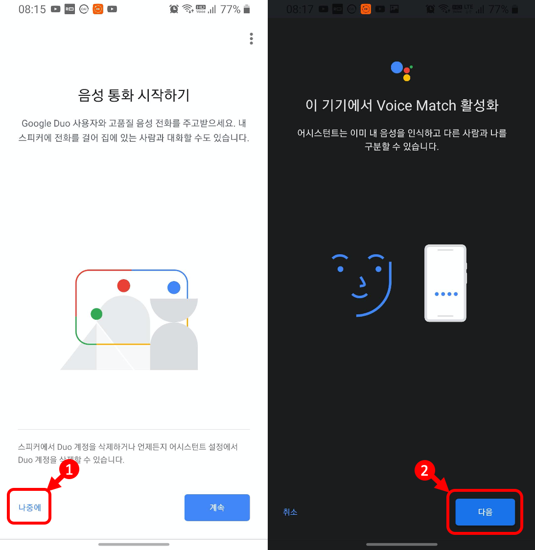 1. 한국에서 Duo앱은 많이 사용안하므로 저는 스킵했습니다. (카톡을 많이 쓰고, 음성도 무료라서...^^)