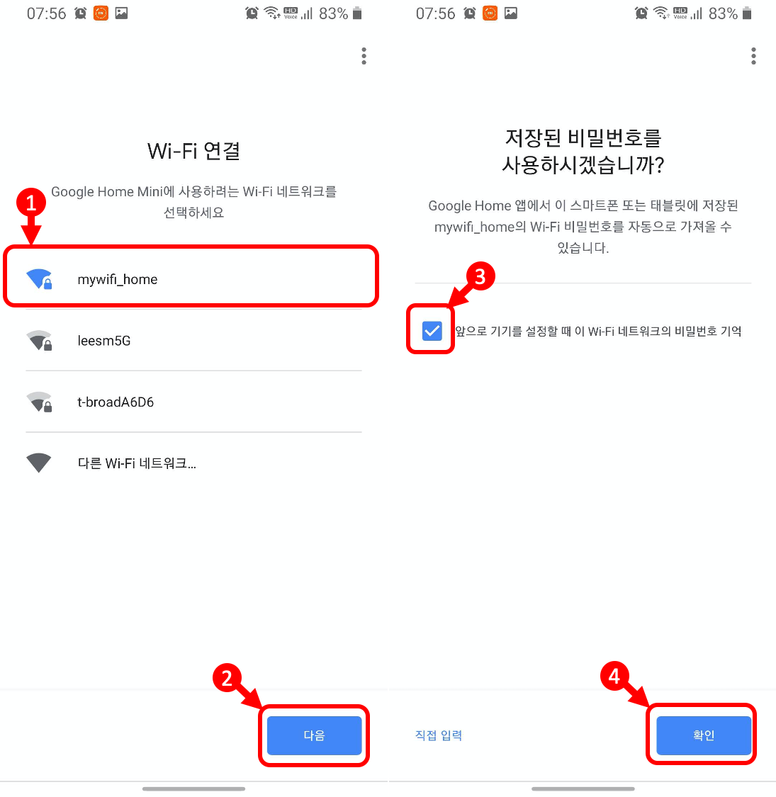 3. 나중에 추가적으로 구글홈에 기기를 연결할 때 비빌번호를 묻지 않도록 체크합니다.