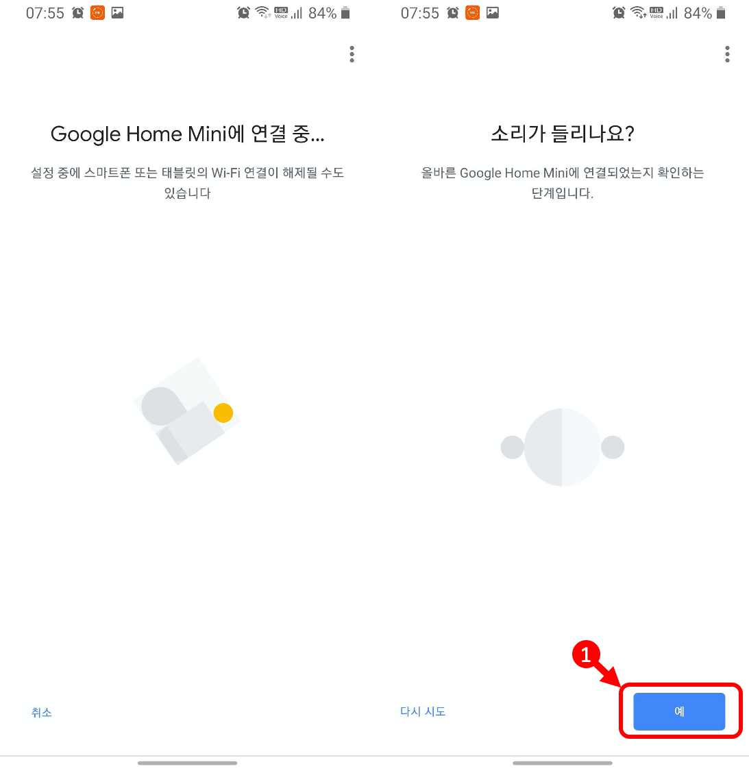 소리가 잘 나면 "예"를 눌러 다음으로 넘어갑니다.