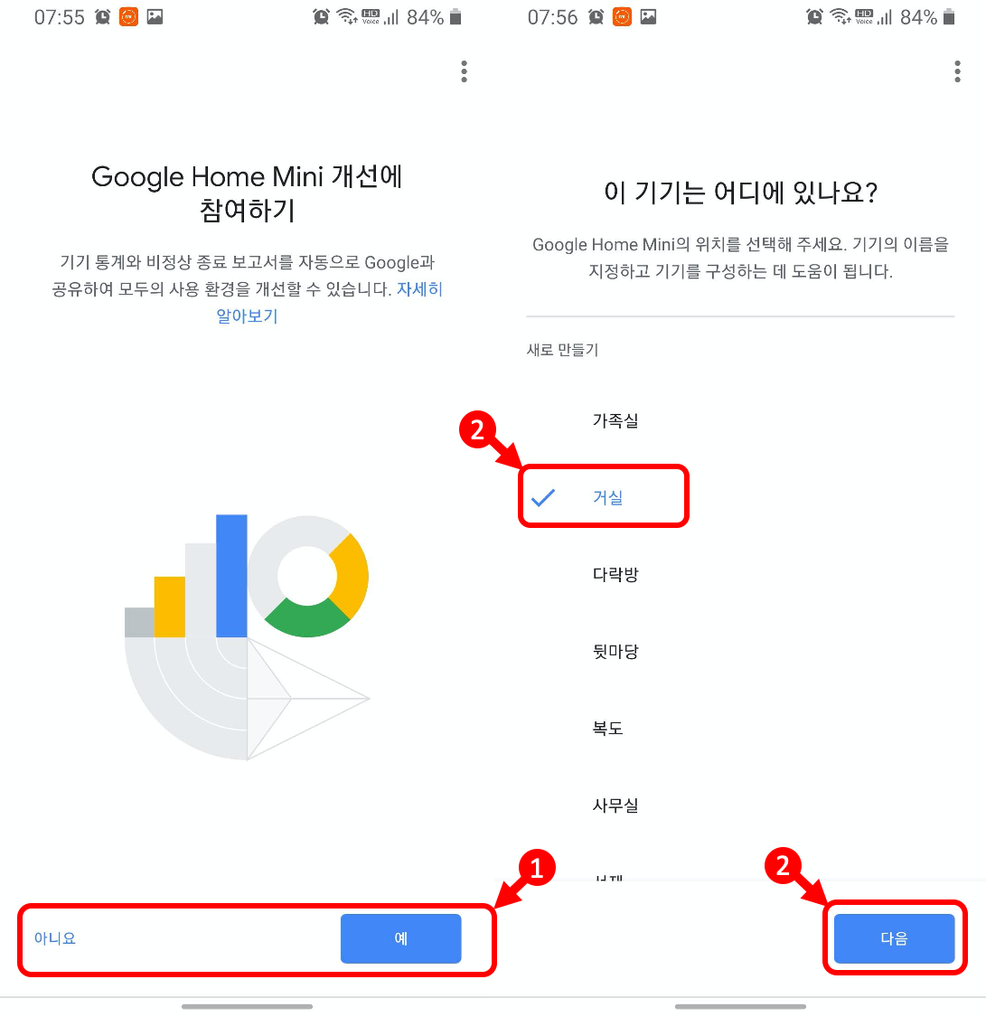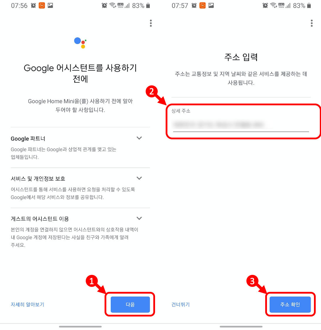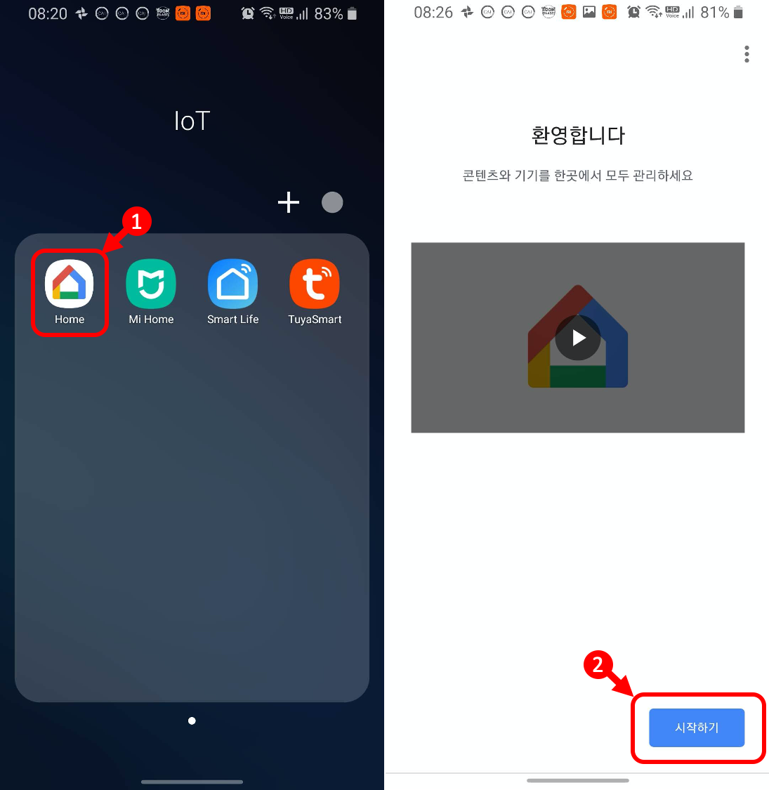 1. 구글 홈 앱 실행 -> 2. 시작하기