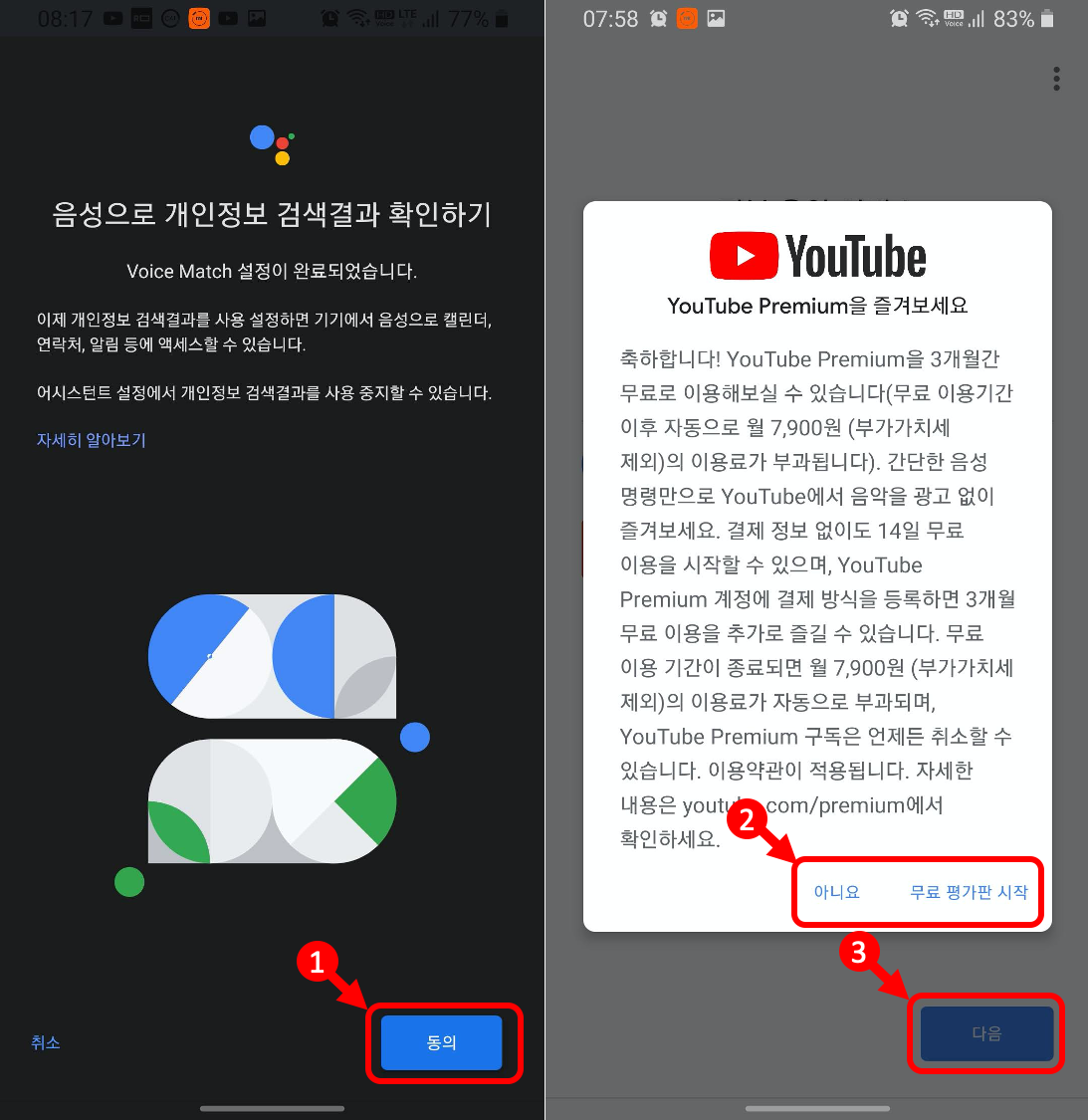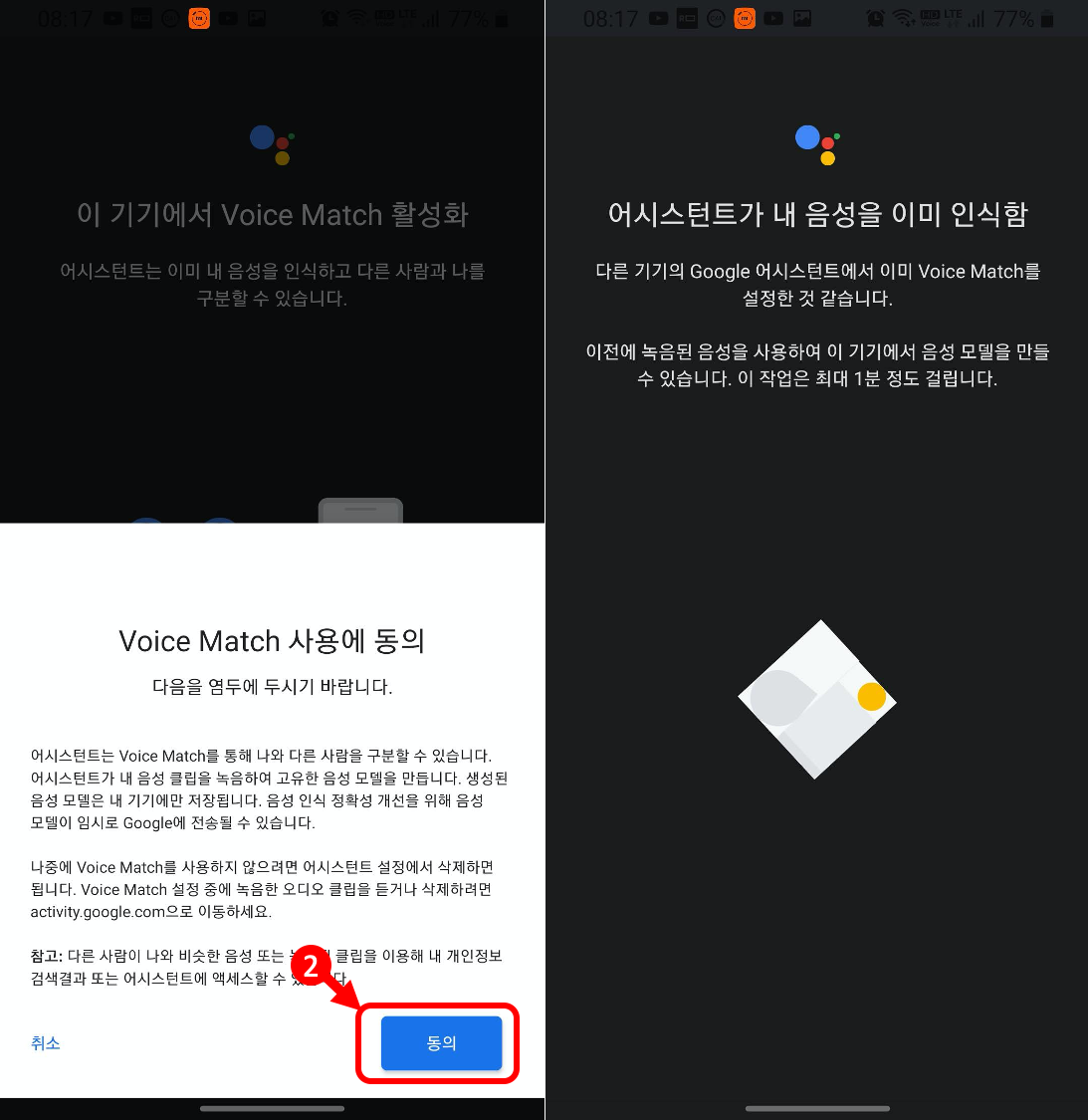 1. Voice Match 사용 동의 -> 내목소리 학습