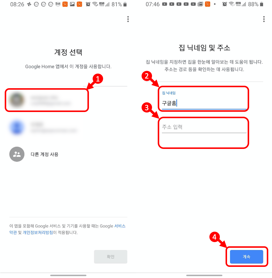 구글 계정을 선택하고 집 닉네임을 입력합니다.