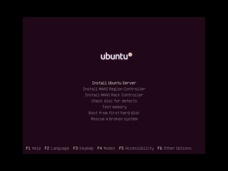 Install Ubuntu Server 를 선택합니다. Desktop 버전도 있지만 여기서는 서버버전을 설명합니다.