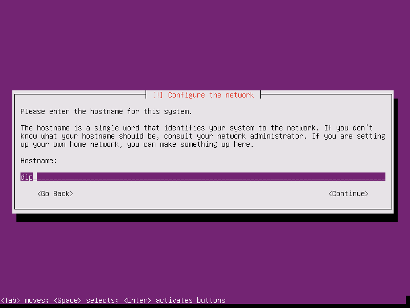 이 우분투 서버에서 사용할 호스트 이름을 선택합니다. "loclahost"등 사용하고 싶은 이름으로 지정합니다.