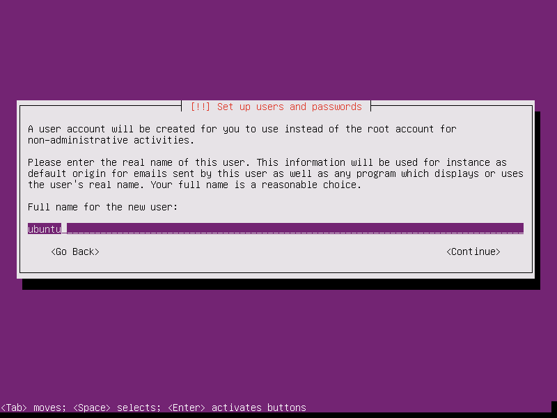 사용자 이름을 설정합니다. 이 설정으로 생성되는 사용자는 기본 관리자로 설정됩니다. Full Name으로 기입해도 되고, 사용할 사용자ID와 동일하게 설정해도 됩니다.