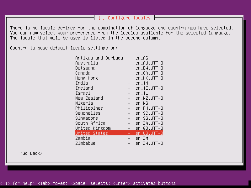 로케일은 United States - en_US.UTF-8 을 선택합니다.