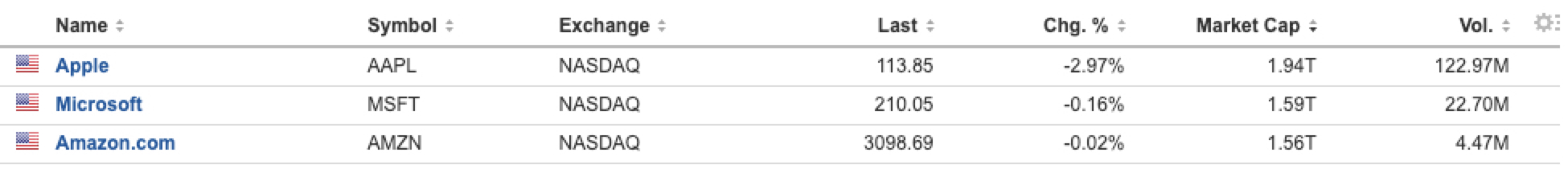 시총 상위종목은 애플, 아마존, 마이크로소프트, 구글 등등 빅테크 종목을 말한다.