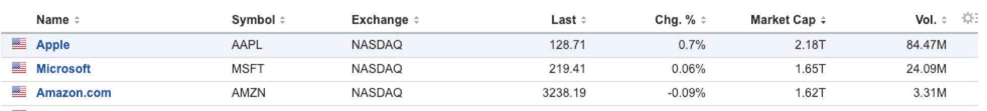기술주를 보면 애플이 0.7%, 마이크로소프트 0.06% 올랐으나 아마존, 구글, 페이스북 등의 빅테크는 모두 떨어졌다.