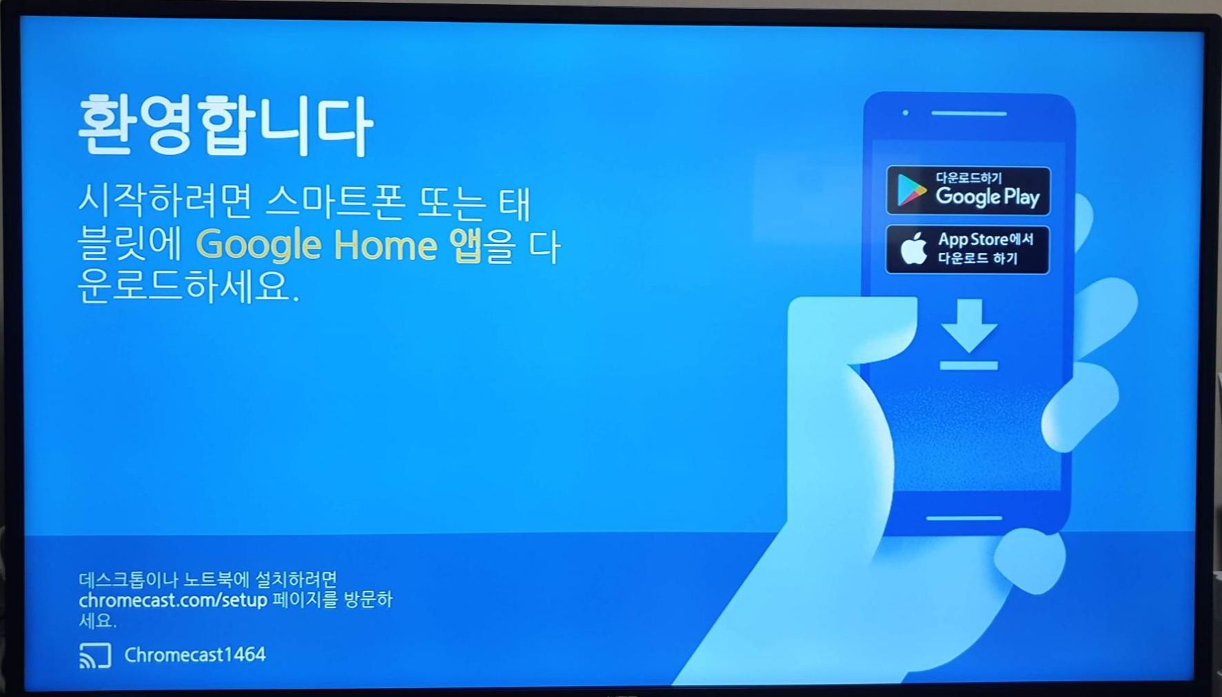 TV를 켜고 외부입력으로 HDMI 화면으로 변경하면 크롬캐스트가 켜진 후 아래와 같은 화면이 나옵니다.