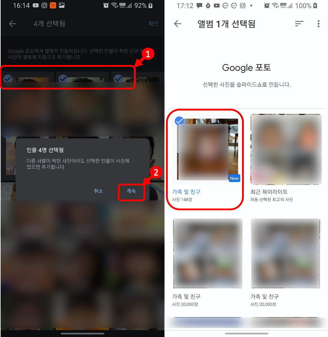 Google 포토에서 저는 가족 및 친구를 선택했습니다.