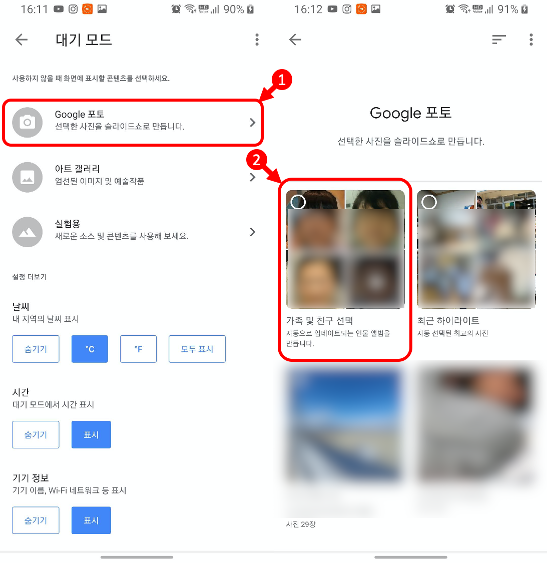 대기모드 -> Google 포토 선택 -> 원하는 항목 선택