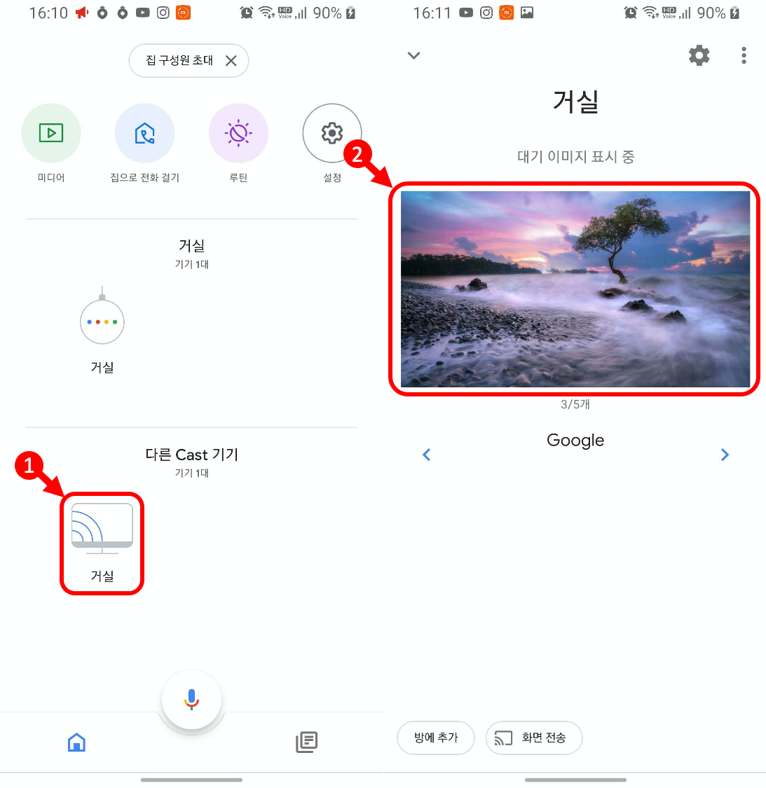 구글 홈 실행 -> 크롬캐스트 선택 -> 대기 이미지를 선택