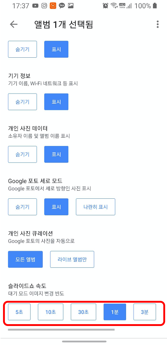 앨범을 선택하고 뒤로 돌아오면 제일 아랫부분에 설정하는 부분이 있습니다.