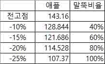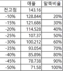 그래서 애플의 말뚝박기 비율표를 최대하락률 50%가 아닌 25%로 수정하려고 한다.