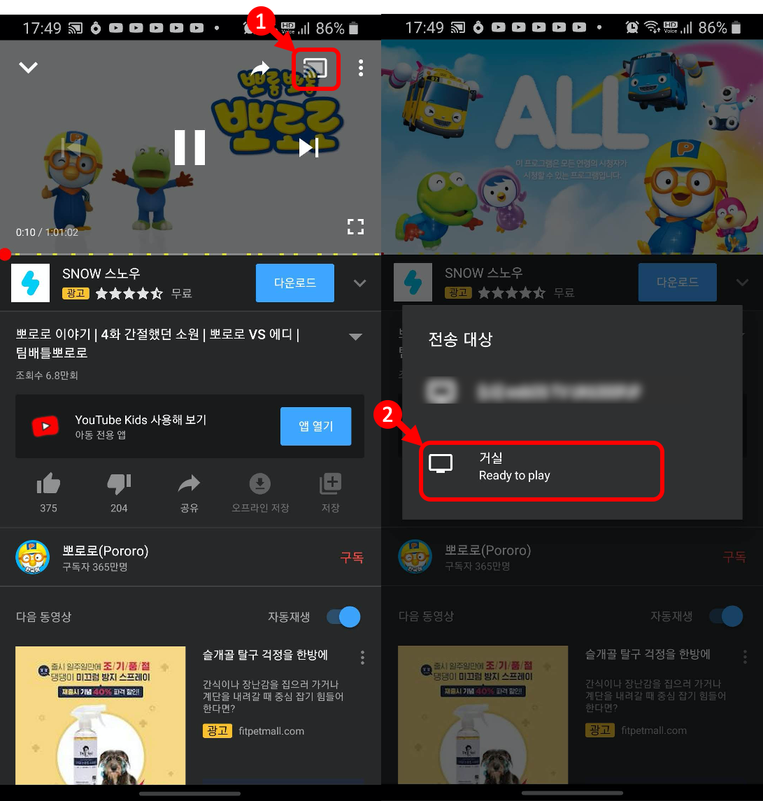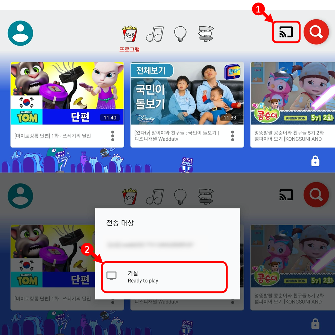 접속한 와이파이에 크롬캐스트가 연결되어 있다면 유튜브 앱에서 크롬캐스트 아이폰이 표시됩니다.