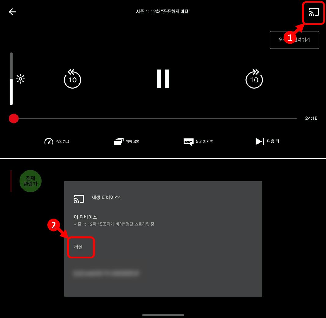 넷플릭스 동영상 재생중에도 오른쪽 상단에 크롬캐스트 아이콘을 누르면 TV로 스트리밍 가능합니다.