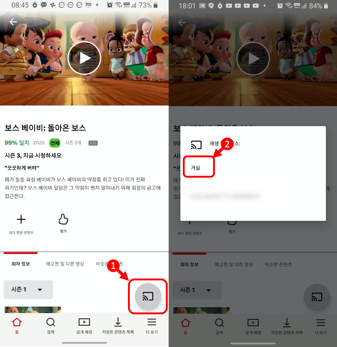 참고사항으로 이전 블로그에서 크롬캐스트를 "거실"로 설정했습니다^^
