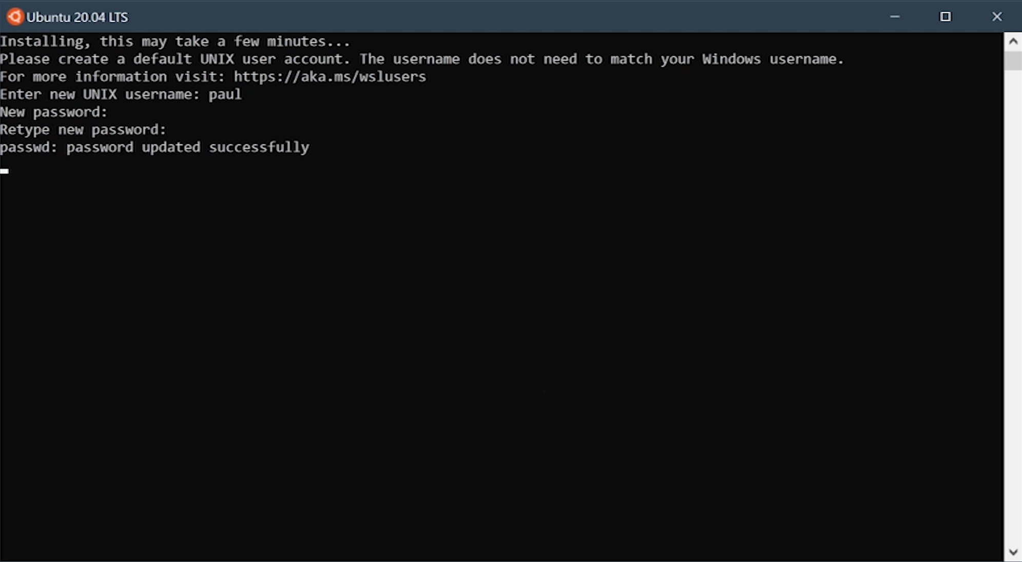 터미널 창에서 사용자 이름과 비밀번호를 입력합니다.