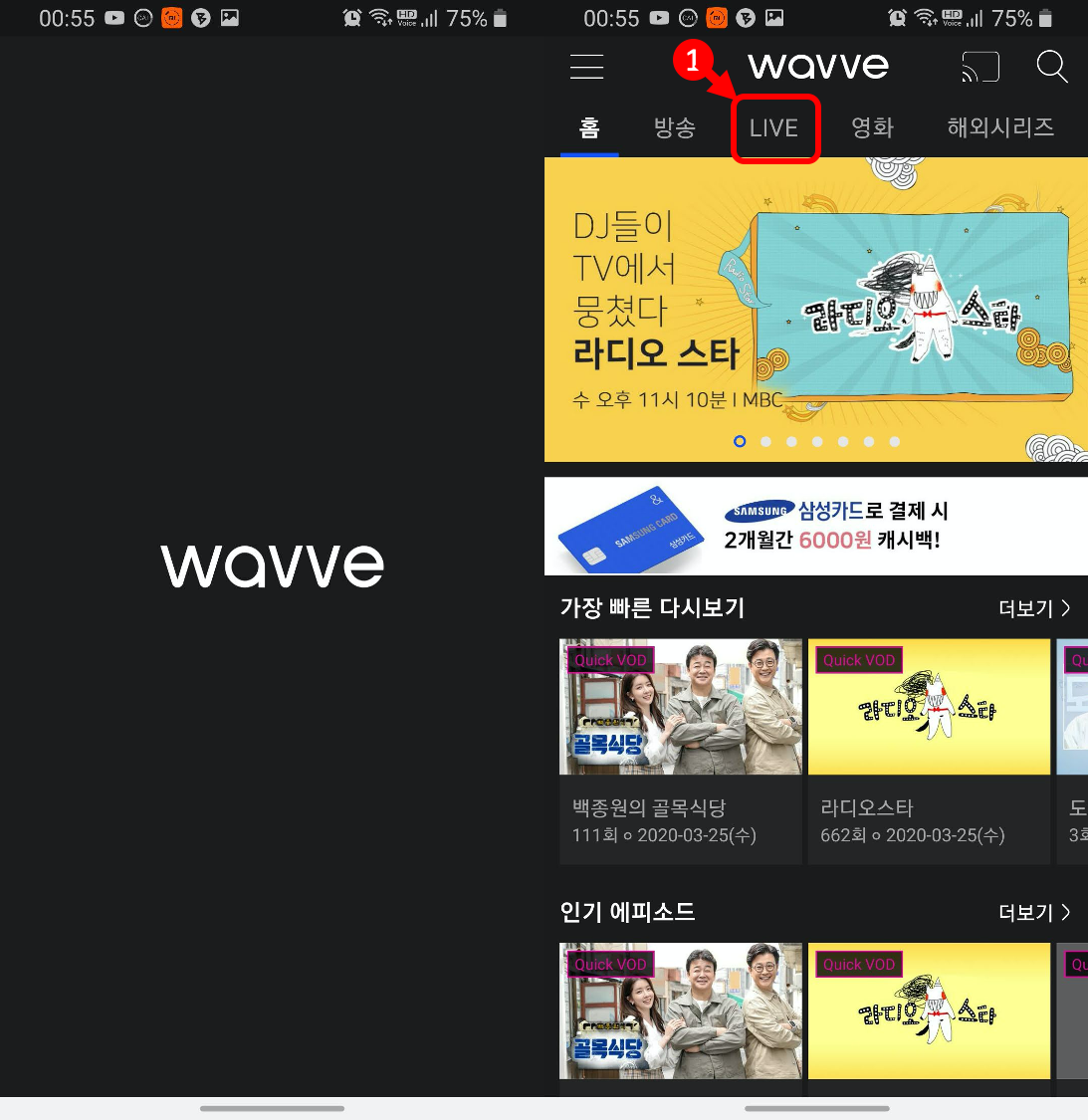 저는 무료로 이용하기 때문에 라이브만 볼수 있고, 광고도 15초씩 봐야하네요.ㅜㅜ