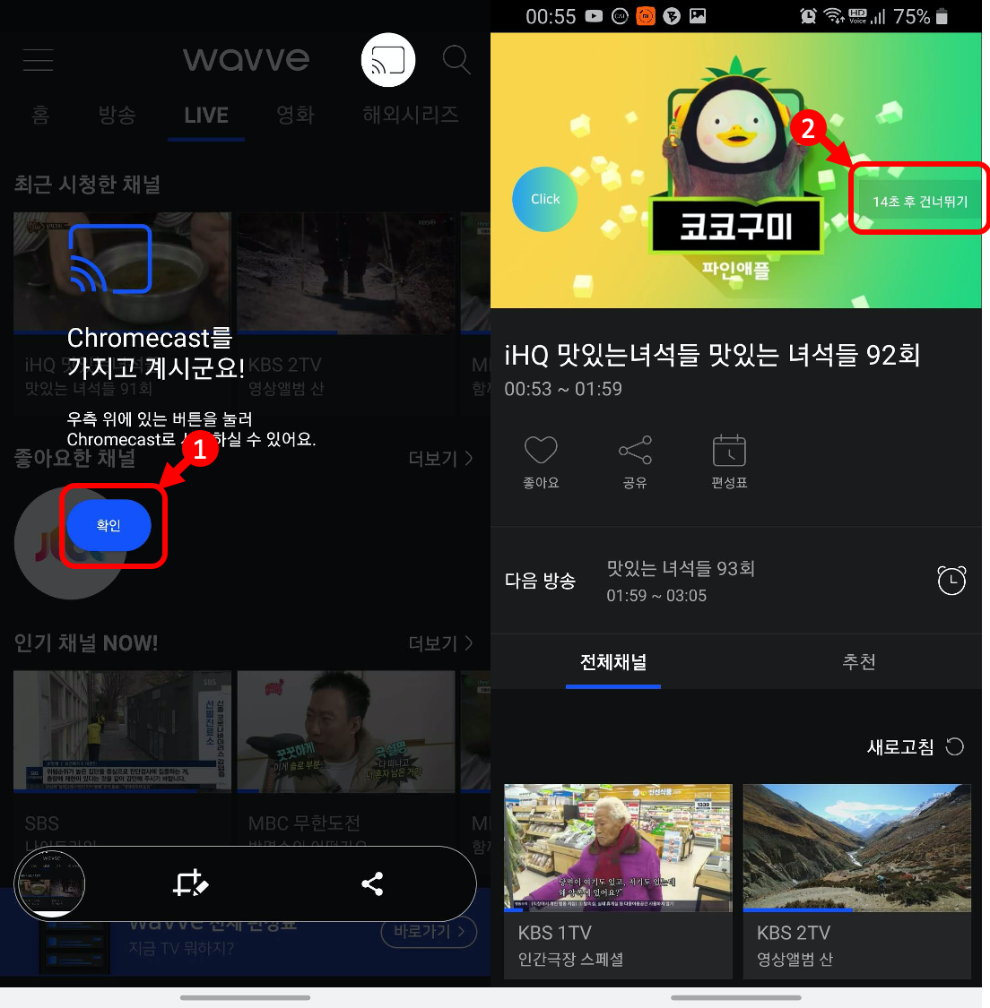 크롬캐스트 연결 확인 및 광고 스킵하기