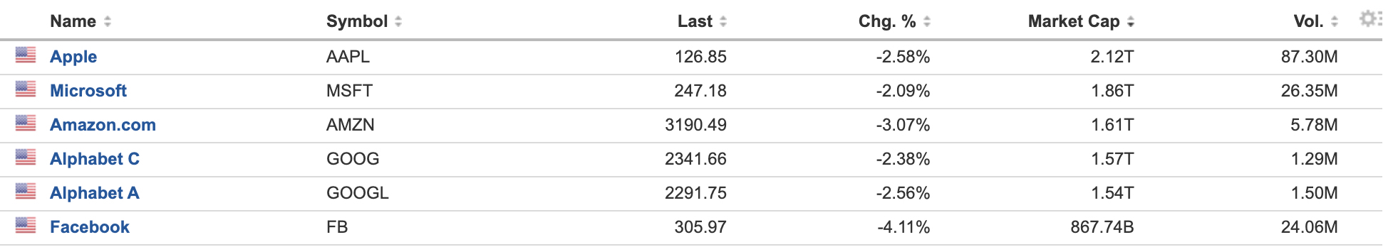 기술주 대부분이 2% 이상 떨어지면서 어제는 완전 폭락했다.
