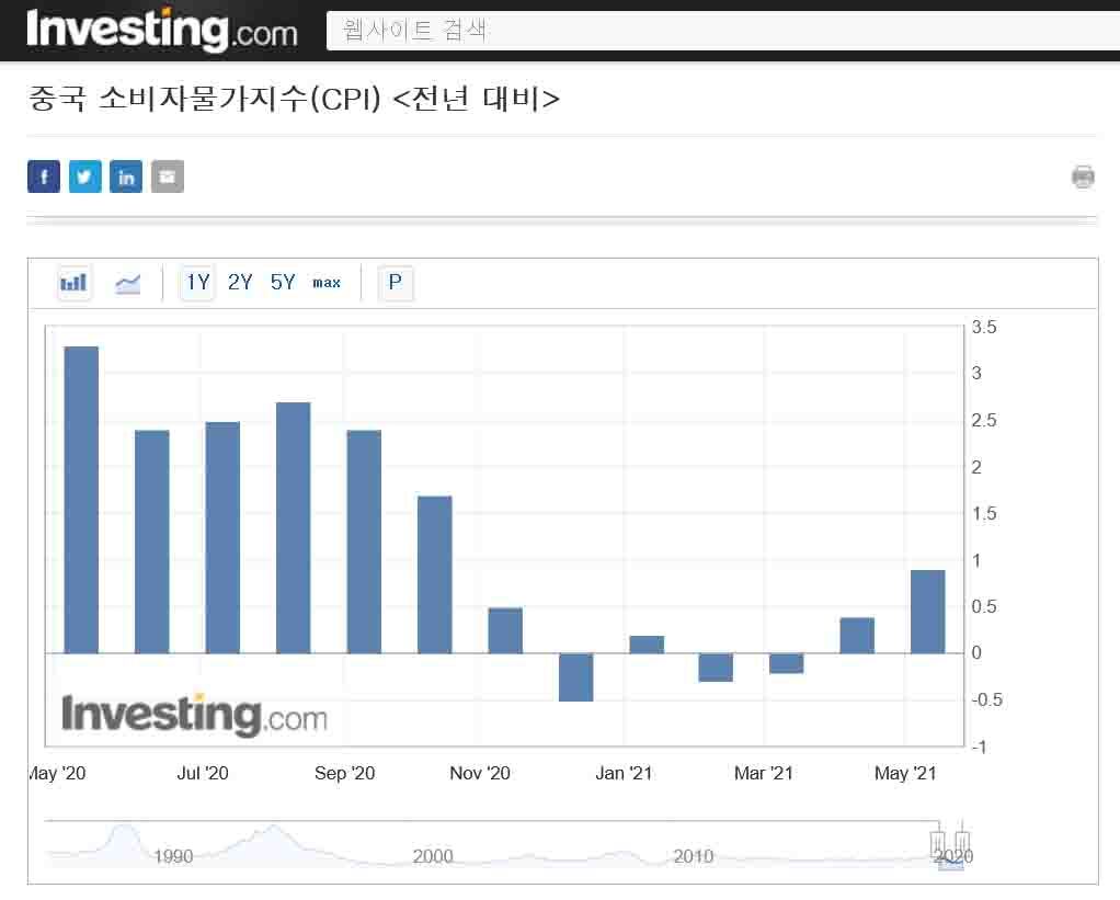 그러나 중국의 소비자 물가지수는 작년 11월 이전까지 올랐다가 오히려 떨어지고 있다.