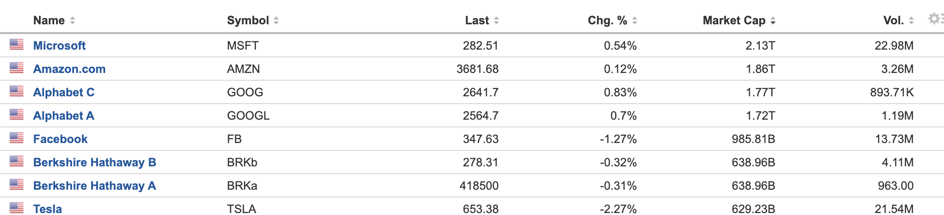 그리고 반대로 애플, 아마존, 마이크로소프트, 페이스북, 구글 등은 사상최고치를 가고 있는 것이다.