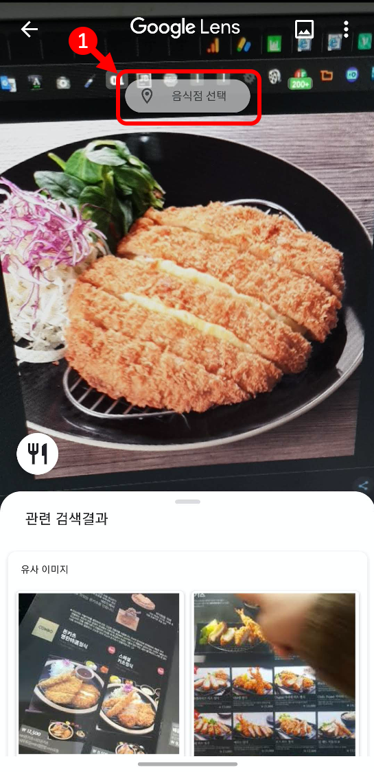 음식 카메라로 비추기 -> 음식점 누르기