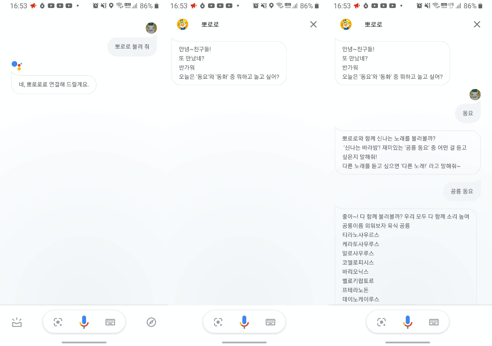 구글 어시스턴트에서 뽀로로를 불러내는 명령어