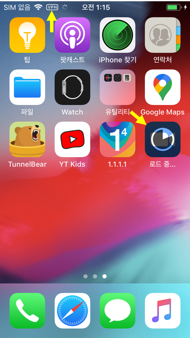 상단에 "VPN"이라는 문구가 표시되면 실행중입니다.