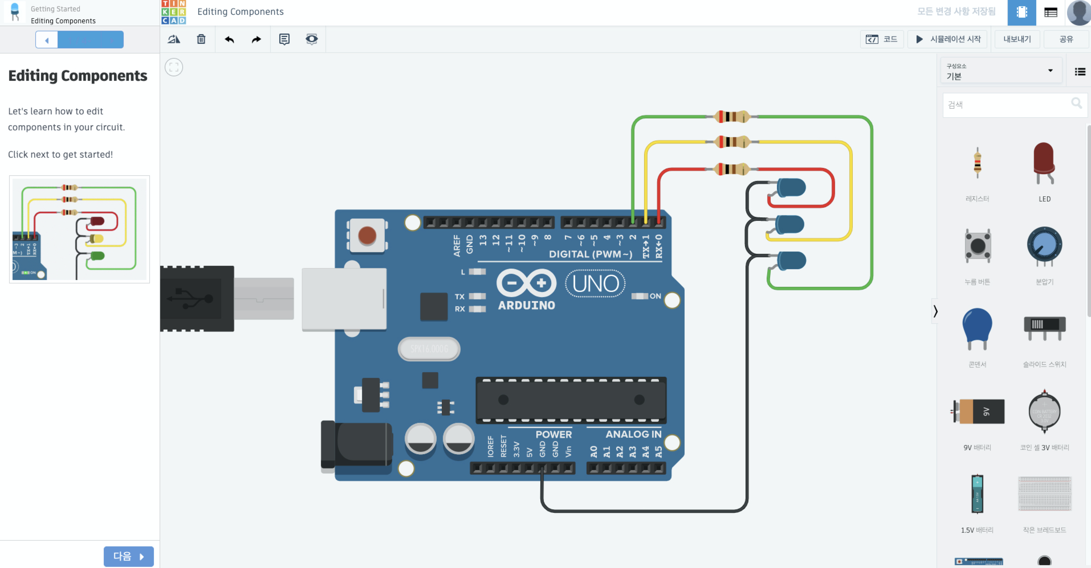 이상으로 틴커캐드를 이용한 아두이노 시뮬레이션 방법을 알아보았습니다.