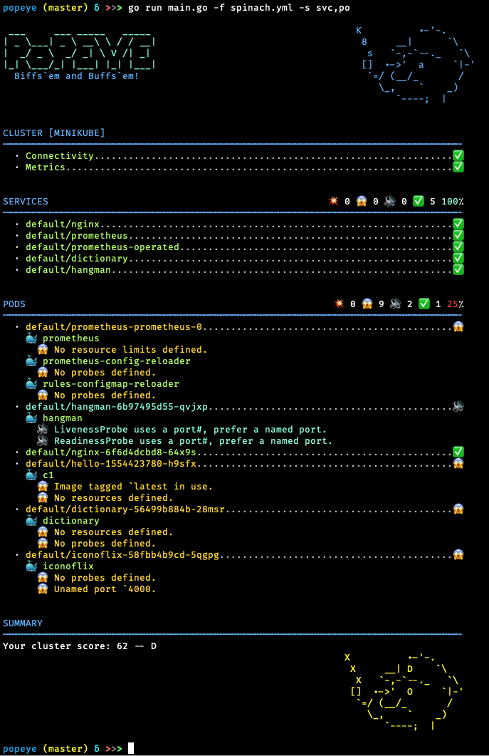 Popeye는 라이브 Kubernetes 클러스터를 스캔하고 배포 된 리소스 및 구성과 관련된 잠재적 인 문제를보고하는 유틸리티입니다.